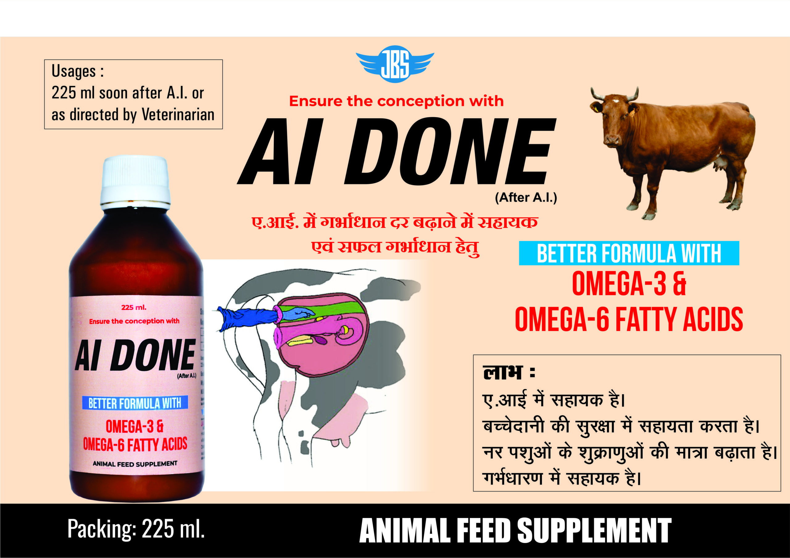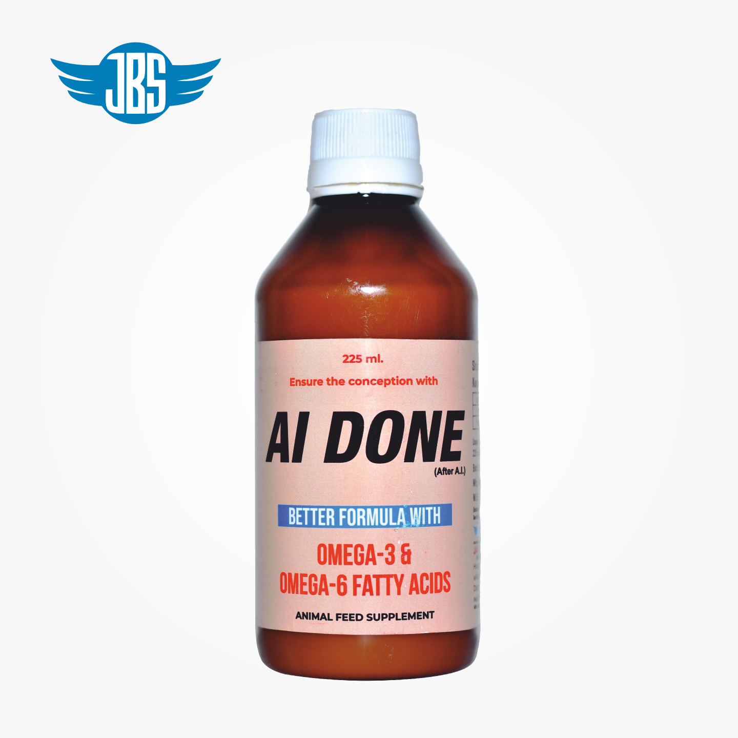 AI Done is a post-insemination reproductive support liquid enriched with Omega-3 & Omega-6 fatty acids, designed to improve conception rate and reproductive efficiency.